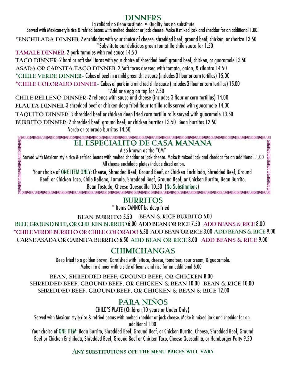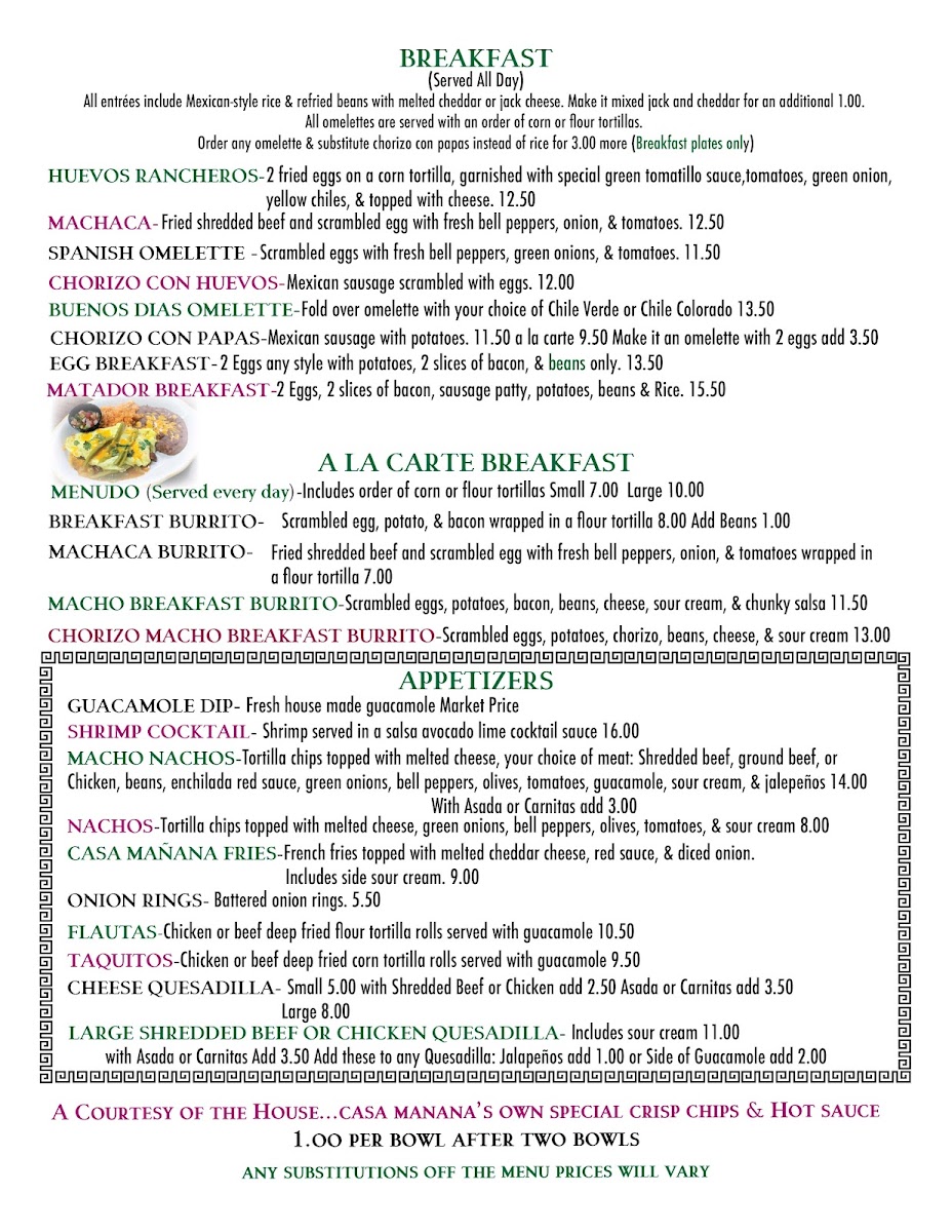 Welcome to Casa Mañana Mexican Restaurant, a gem nestled in Santa Maria, California. Located at 1640 S Broadway, this cozy establishment transports diners to Mexico through its authentic flavors and inviting atmosphere. The menu features a delightful array of traditional dishes, from flavorful enchiladas to sizzling fajitas. Each plate is crafted with care, promising deliciousness that leaves patrons wanting more.